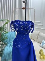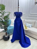 فستان الأزرق الملكي اختيار مثالي لكل سيدة تبحث عن إطلالة مهيبة تجمع بين الفخامة والجاذبية. تصميم راقٍ مزدان بالتطريزات اللامعة التي تضفي بريقاً ساحراً