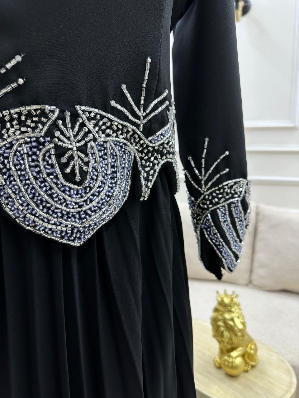 - الخامة: قماش فاخر مطرّز بدقة عالية