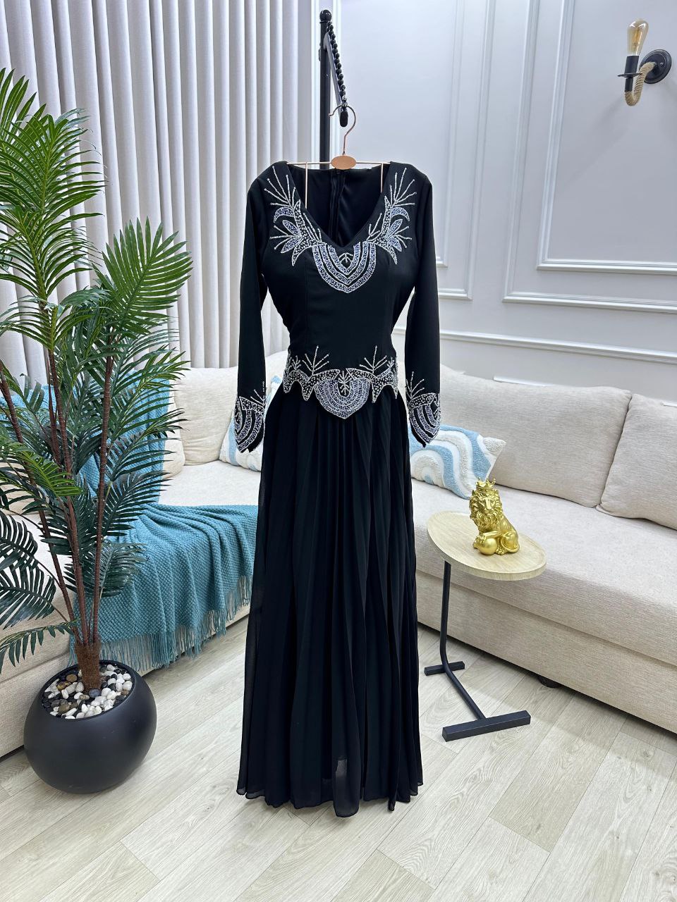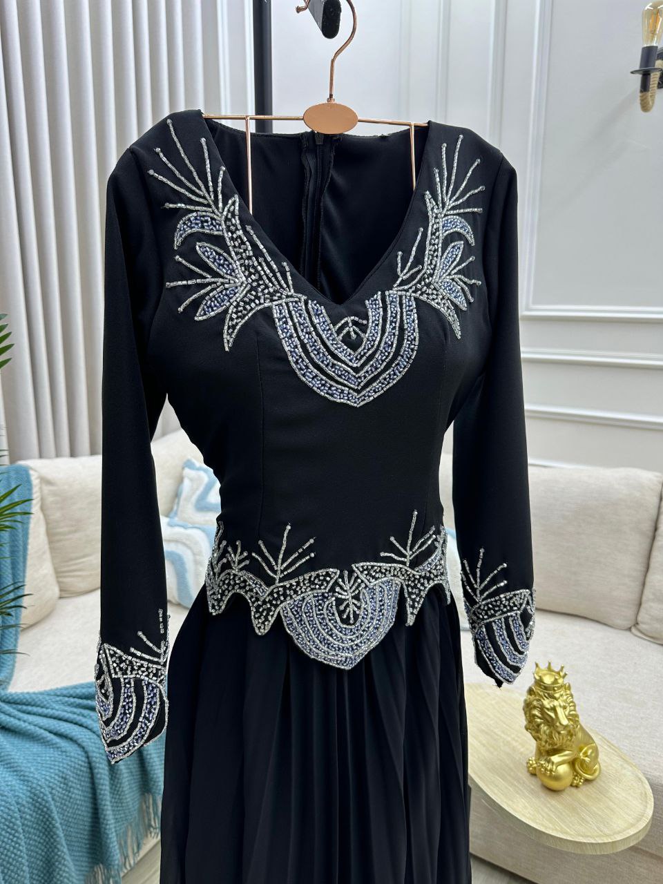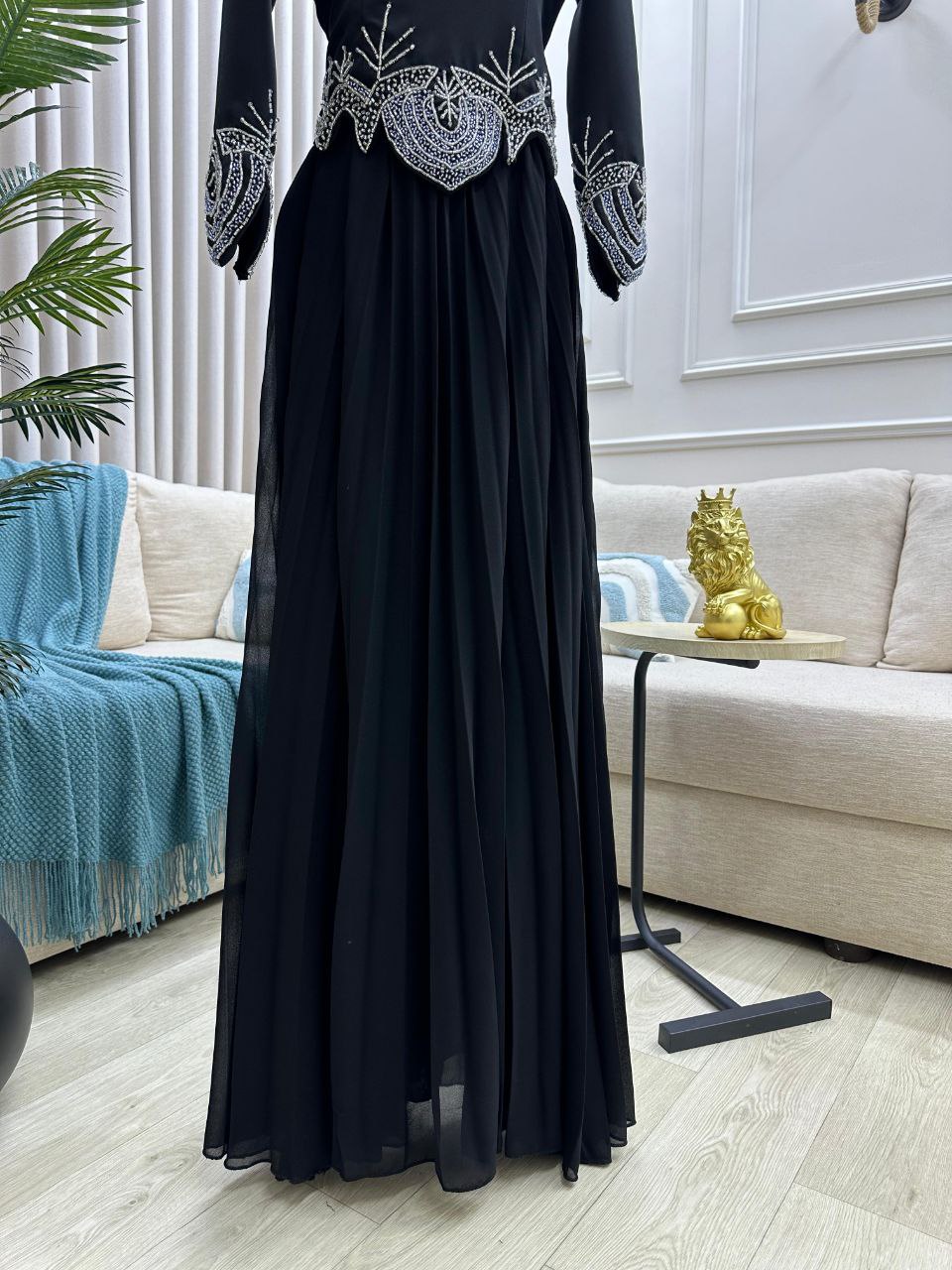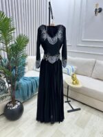- الاسم: فستان سهرة باللون الأسود – تصميم مطرّز