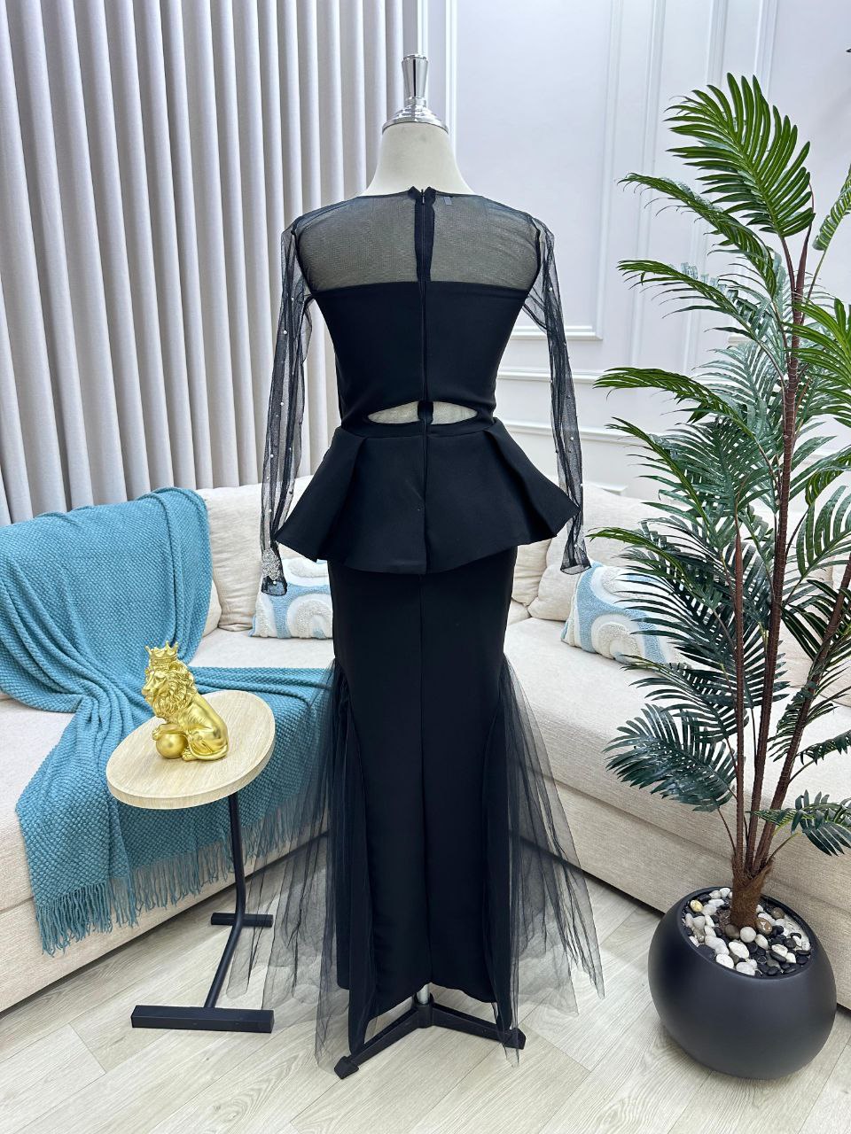 - الاسم: فستان سهرة باللون الأسود – تصميم مميز ومزين باللؤلؤ
