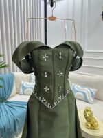 فستان سهرة باللون الزيتي الفاخر