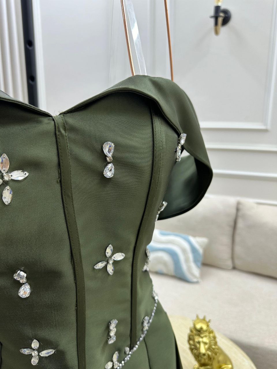 فستان سهرة باللون الزيتي الفاخر