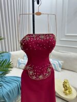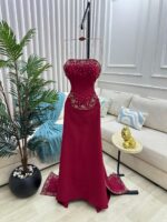 فستان سهرة باللون العنابي – إطلالة ملكية