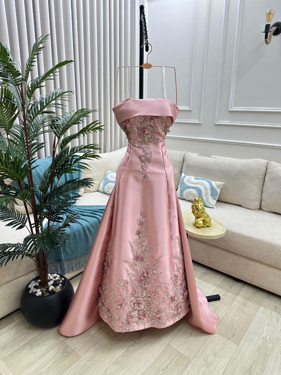 تألقي في مناسباتك الكبرى مع هذا الفستان الساحر، المصمم خصيصاً لإطلالة ملكية لا تُنسى. يتميز بلونه الوردي الهادئ وتطريزات دقيقة تزيد من فخامته، مع تصميم يبرز جمال قوامك بأسلوب أنيق وراقي